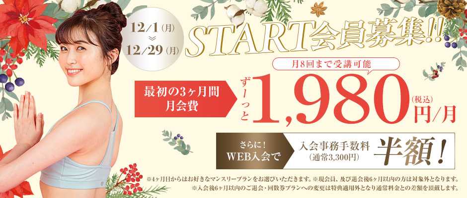 最初の3ヶ月1,980円 | 全営業時間 月に8本までお好きなレッスンを受けられる |